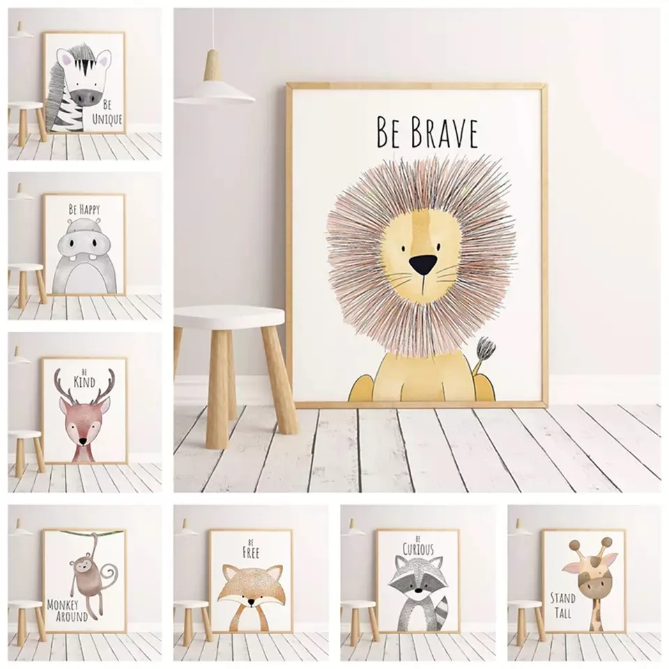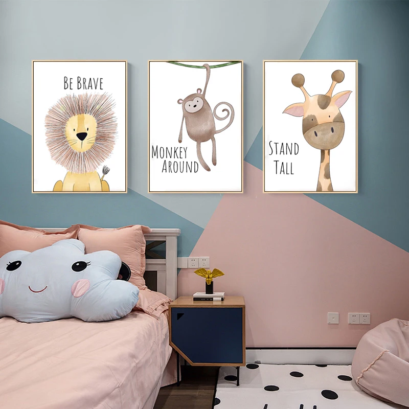 Cute Animal Giraffe Lion Picture Kindergarten Children’s Room Cartoon Home Decoration Art Poster Canvas Painting