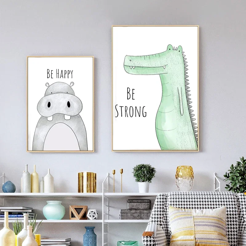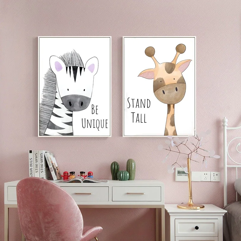 Cute Animal Giraffe Lion Picture Kindergarten Children’s Room Cartoon Home Decoration Art Poster Canvas Painting