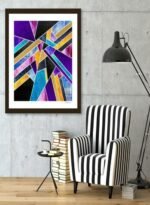 The Vector frame is made from solid wood with a contemporary, angular profile measuring 0.87″ wide x 0.87″ deep. A gesso coating gives the moulding rich color and a smooth finish. Premium shatterproof acrylic protects the art print, while an acid free dust cover on the back provides a custom finish. Includes wall hanging hardware