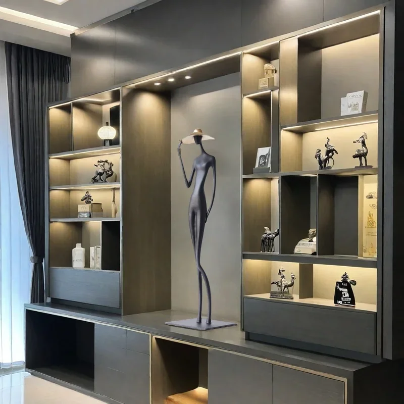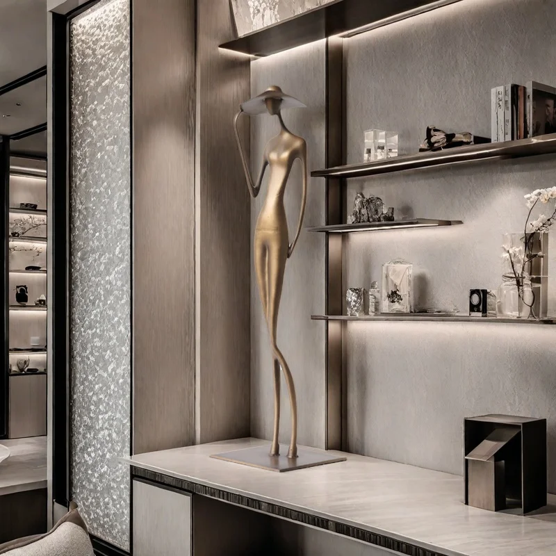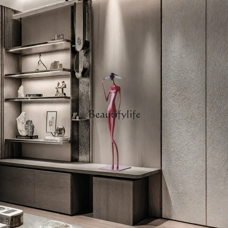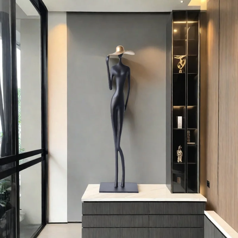 yj5 Light luxury abstract figure wearing hat long legs sculpture ornament hotel living room entrance art jewelry